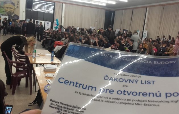 Centrum pre otvorenú politiku sa zúčastnilo na prvom ročníku podujatia NETWORKING NIGHT, ktoré pripravilo občianske združenie Future Generation Europe, ktoré sa uskutočnilo 21.11.2016 v UPéCé v Mlynskej doline v Bratislave. Počas tejto udalosti sa mladým ľuďom prezentovali neziskové organizácie a veľké firmy, s ktorými mohli mladí ľudia nadviazať svoj kontakt už teraz. Cieľom podujatia bolo zvýšiť povedomie o možnostiach kariérového a osobnostného rozvoja pre mladých.