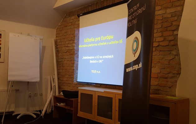 Piatok 23. februára patril brainstormingu skúseností a poznatkov priamo učiteľov – viedol ho Roman Balko (TEUS, n.o.). Sobotné dopoludnie sme venovali téme Európskej únie a súčasným výzvam a problémom. Tomáš Madleňák (SFPA) priblížil, ako túto tému podať jednoduchým a zaujímavým spôsobom na hodinách občianskej náuky.