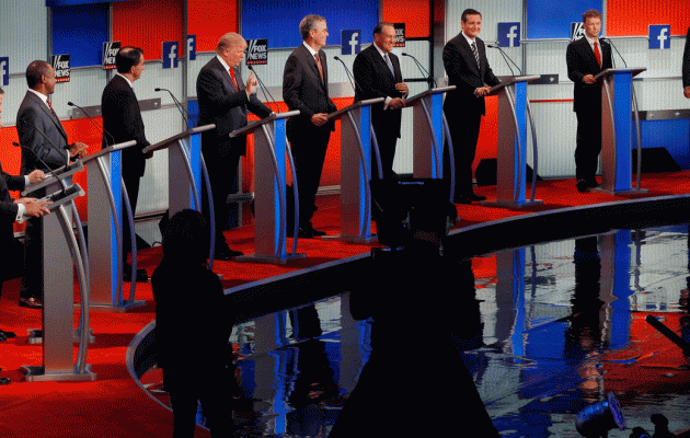 Republikáni sa chceli poučiť a mať menej debát ako v roku 2012. Škoda, že to poučenie nepreniesli aj na počet kandidátov. Štvrtková debata bola rozdelená na dve časti. V tej prvej boli outsideri. Sedem posledných ľudí v prieskumoch. Niektorí z nich majú v prieskume menej ako jedno percento. Aj keď sa tak netvárili. Tá druhá bola v hlavnom vysielacom čase a stretli sa v nej desiati kandidáti, ktorí si viedli v prieskumoch najlepšie. Niektorí z nich majú v prieskume menej ako dve percentá. Aj keď to tiež nedávali najavo. Počet kandidátov je a bude kameňom úrazu celej tejto loveckej sezóny. Ak odrátame reklamy, vstupy moderátorov, prestrelky medzi kandidátmi a potlesky, vychádza na každého kandidáta v priemere 6-7 minút čistého času (Trump rozprával asi 9 minút, Paul 5). Takže kandidáti musia do 30 sekúnd zahrnúť nápady a nástroje ako zlepšiť ekonomiku, zničiť terorizmus.